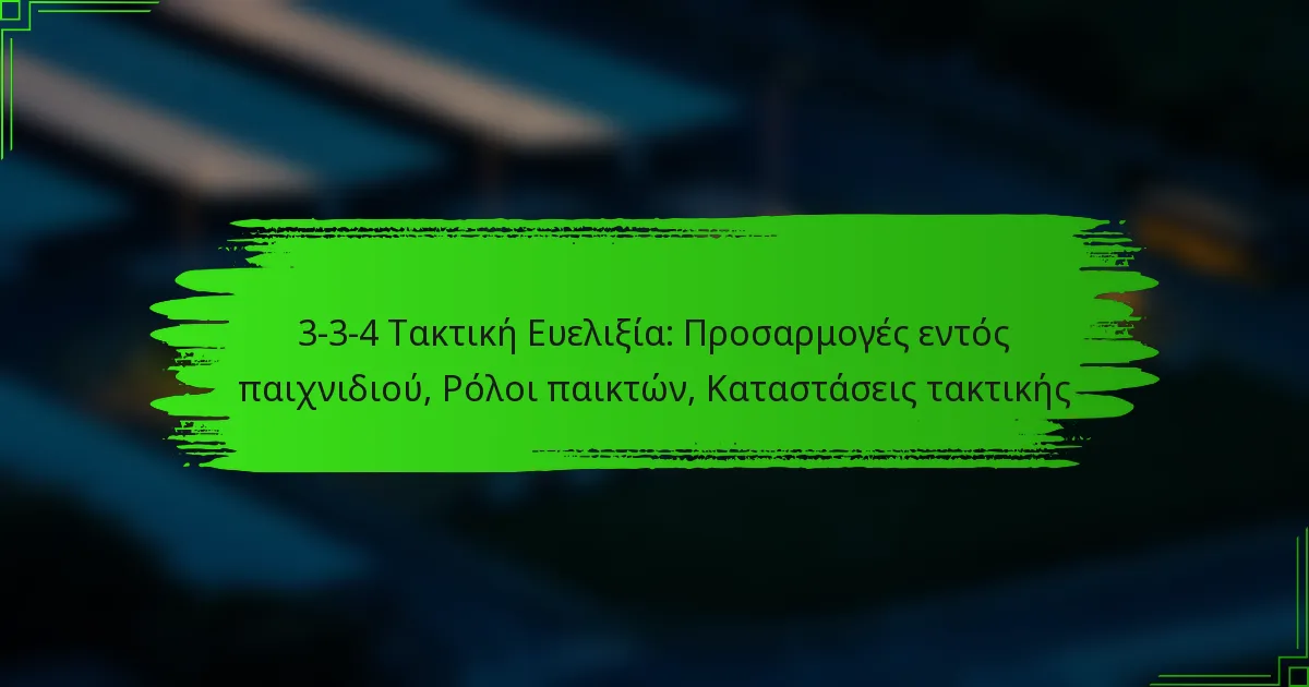 Η τακτική ευελιξία 3-3-4 αναφέρεται σε μια ποδοσφαιρική διάταξη που τονίζει την προσαρμοστικότητα κατά τη διάρκεια του παιχνιδιού, επιτρέποντας στις ομάδες να προσαρμόζουν τις στρατηγικές τους με βάση τη ροή του αγώνα. Αυτή η διάταξη μπορεί να μετατοπιστεί μεταξύ επιθετικών και αμυντικών σχημάτων, καθιστώντας την μια ευέλικτη επιλογή για προπονητές που επιθυμούν να μεγιστοποιήσουν την απόδοση της ομάδας τους.